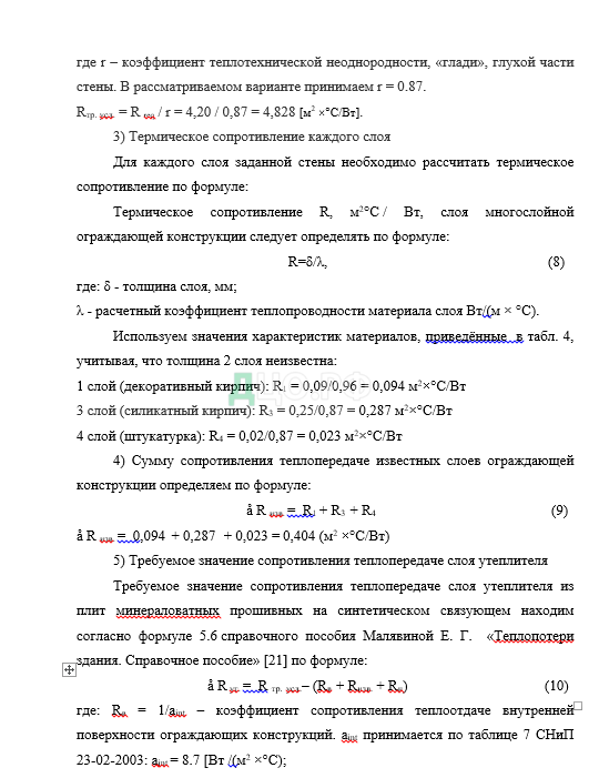 Методика расчёта принята согласно СП 50.101.2004 [15].