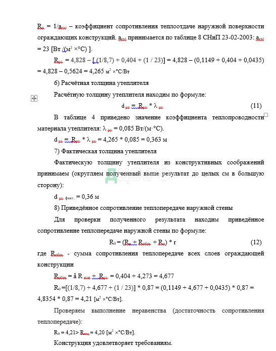 ВЫВОД: фактическое приведённое сопротивление теплопередаче не меньше требуемого.