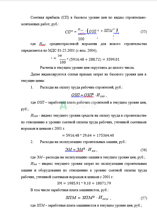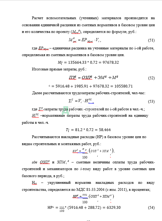 Расход учтенных материалов (ЕРМуч ), руб. – 135664,33 Затраты труда рабочих (HTc), чел.-ч. – 81,2