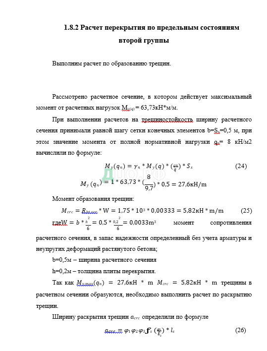 1.8.2 Расчет перекрытия по предельным состояниям второй группы