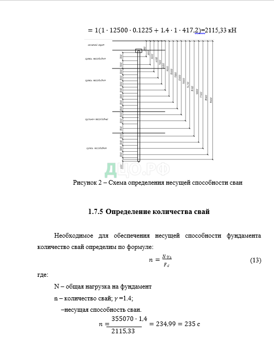 = 1,5 + 3 + 7 + 3,5 + 5 − 1,9 + 0,3 = 17,4m Длина сваи должна быть кратна 1м. Округлим значение длины сваи до целого большего числа и примем сваю: С180.35-А-800