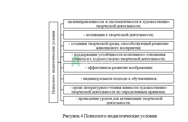 Анализ литературы позволил выделить психолого-педагогические условия. Творческая самореализации учащимися на уроках литературного чтения при работе с басней будет осуществлена при их соблюдении (рис.4).