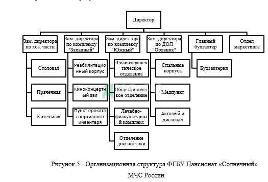 Организационная структура ФГБУ Пансионат «Солнечный» МЧС России представлена на рисунке 5.