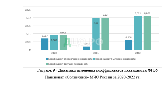 Таблица 9 — Динамика и структура пассивов ФГБУ Пансионат «Солнечный» МЧС России за 2020-2022 гг., тыс. рублей