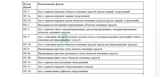 Учет и движение основных средств должны быть документированы – это неизменное правило распространяется и на основные средства, также как на другие объекты учета. В настоящее время действуют следующие формы по учету основных средств, отраженные в таблице 1.1.