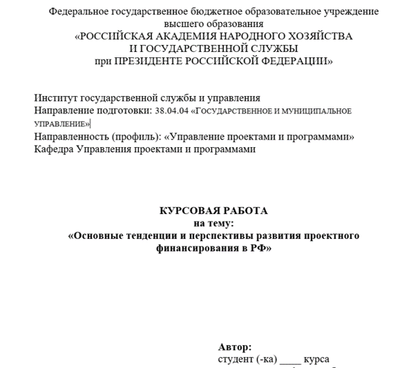 ВУЗ: «РОССИЙСКАЯ АКАДЕМИЯ НАРОДНОГО ХОЗЯЙСТВА И ГОСУДАРСТВЕННОЙ СЛУЖБЫ при ПРЕЗИДЕНТЕ РОССИЙСКОЙ ФЕДЕРАЦИИ»