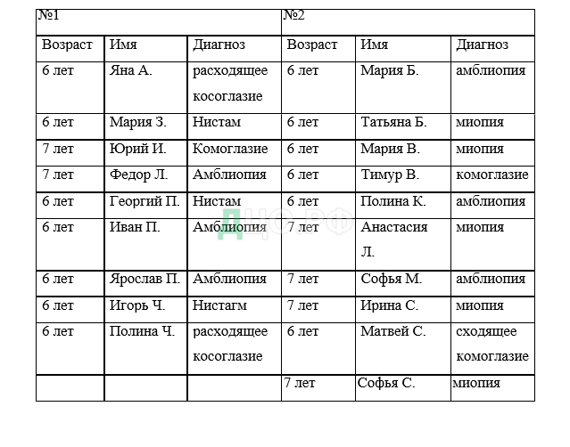 • группа №2 – 10 человек (2 мальчика, 8 девочек) (см. таблицу 1).