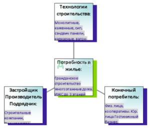 Данная глава посвящена разработке и внедрению инновационного проекта на предприятии ООО «АРКАДЕС» для наращивания конкурентных преимуществ компании в строительном направлении. Рассмотрим на рисунке 29 структура рынка по отношению к базовой потребности в жилье продавец, продукт, покупатель.