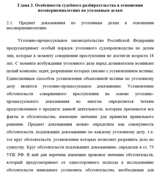Новизна исследования заключается в предложениях по совершенствованию норм Уголовно-процессуального кодекса Российской Федерации, которые регулируют судопроизводство по делам в отношении несовершеннолетних, а также практики их применения.