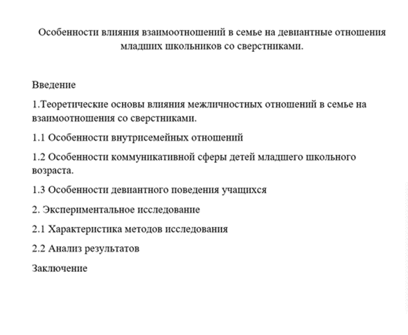 Целью данной работы является исследование особенностей влияния взаимоотношений в семье на девиантные отношения младших школьников со сверстниками.
