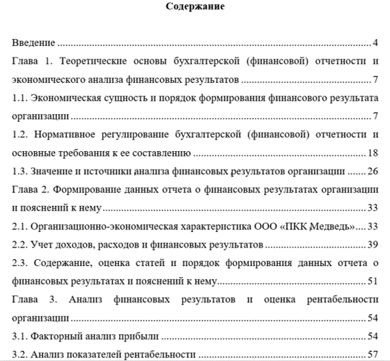 - провести анализ финансовых результатов и оценка рентабельности организации ООО «ПКК «Медведь».