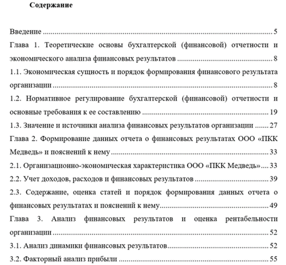 Предмет исследования – отчет о финансовых результатах ООО «ПКК «Медведь».