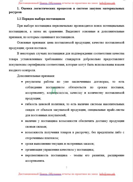 1. Оценка логистических процессов в системе закупок материальных ресурсов