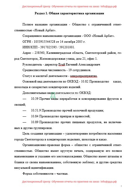 Глава 1 отчета по практике в ООО «Новый Арбат»