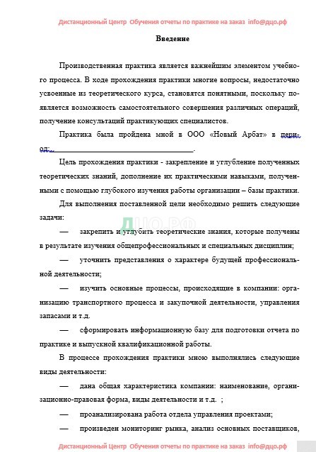 Производственная практика является важнейшим элементом учеб-ного процесса. В ходе прохождения практики многие вопросы, недоста-точно усвоенные из теоретического курса, становятся понятными, по-скольку появляется возможность самостоятельного совершения различ-ных операций, получение консультаций практикующих специалистов.
