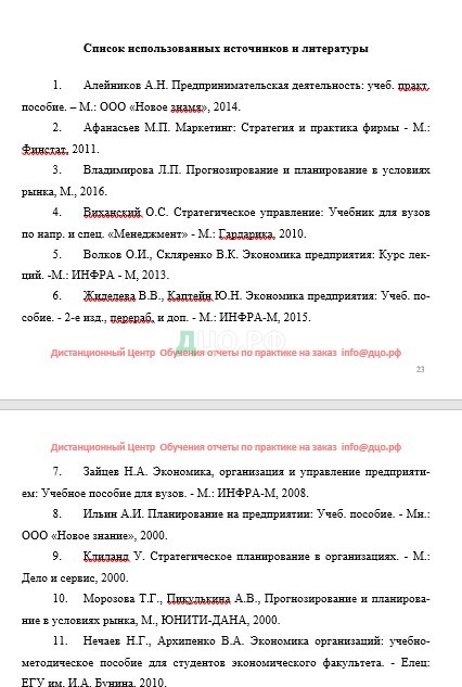 Список литературы отчета по практике в ООО «Новый Арбат»