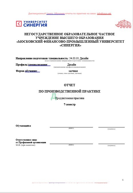 Титульный лист отчета по практике по дизайну