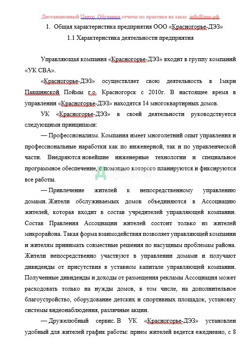 Объектом практики выступает ООО «Красногорье-ДЭЗ».