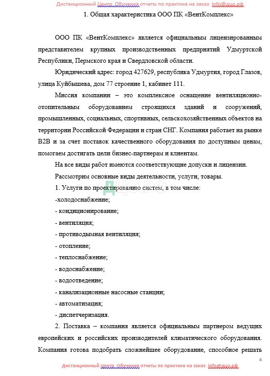 Производственная (технологическая практика) практика проходила на базе ООО ПК «ВентКомплекс».