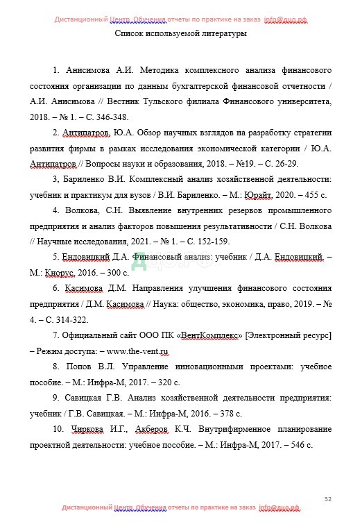 Список литературы отчета по практике по финансам и кредиту