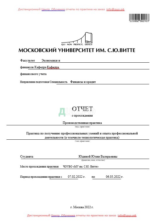 Титульный лист отчета по финансам и кредиту