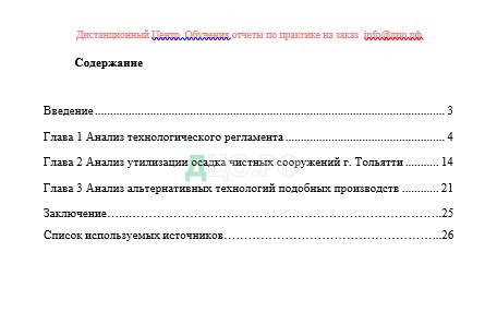 Содержание отчета по практике по химической технологии