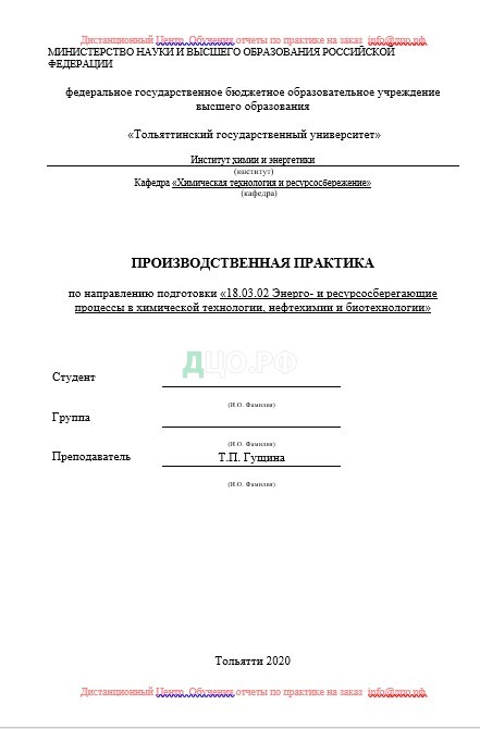 Титульный лист отчета по практике по химической технологии