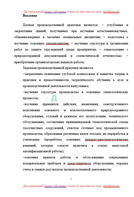 Целями производственной практики являются: углубление и закрепление знаний, полученных при изучении естественнонаучных, общеинженерных и частично специальных дисциплин; подготовка к изучению основных спецдисциплин; изучение структуры и организации работ по защите окружающей среды предприятия; ознакомление с природоохранной документацией и статистической отчетностью; приобретение организаторских навыков работы.