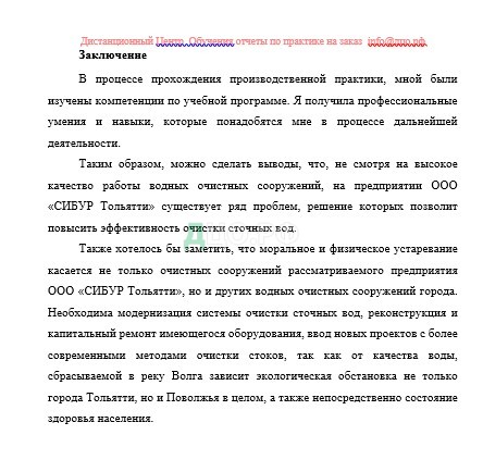 Заключение отчета по практике по химической технологии