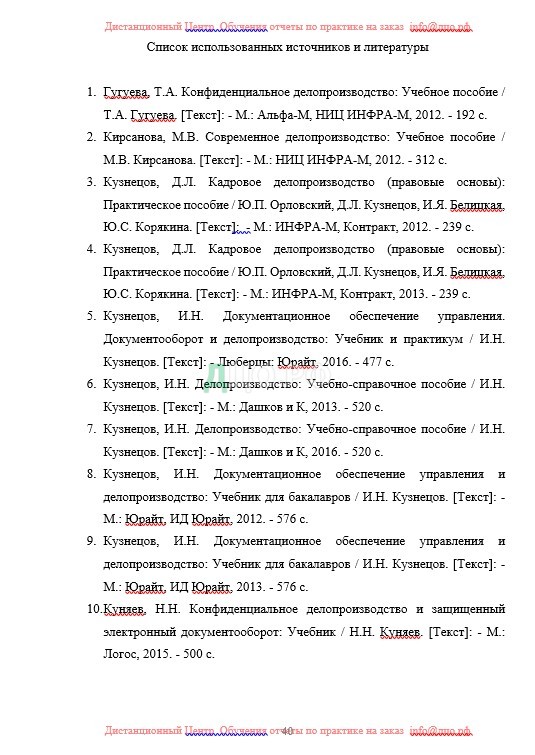 Список литературы отчета по практике по инфоуроку
