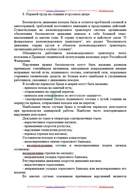 Содержание отчета по практике по организации управления и перевозок на транспорте