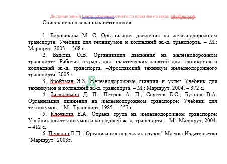 Список литературы отчета по практике по организации управления и перевозок на транспорте