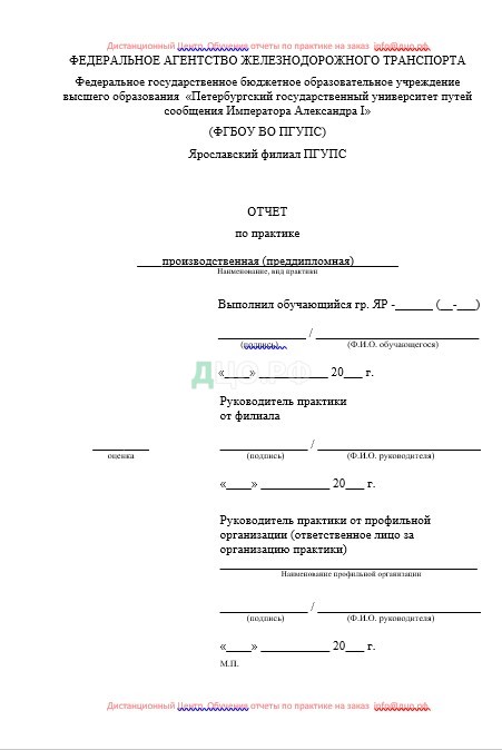 Титульный лист отчета по практике по организации управления и перевозок на транспорте