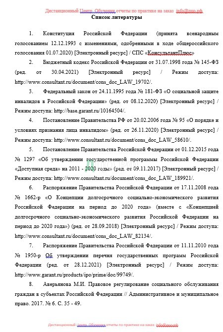 Список литературы отчета по практике по праву и организации социального обеспечения