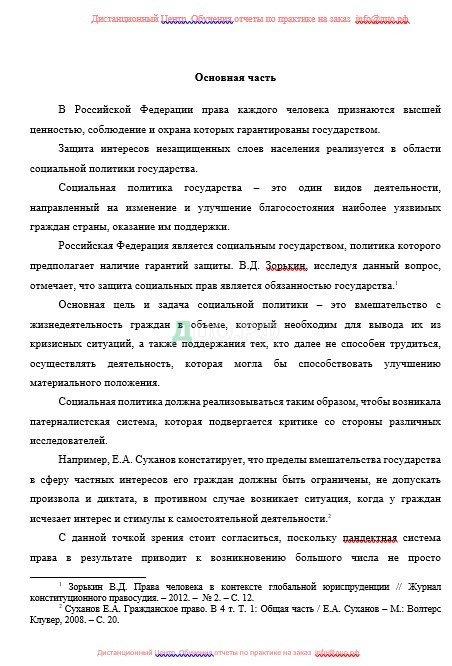 Основная часть отчета по практике по праву и организации социального обеспечения