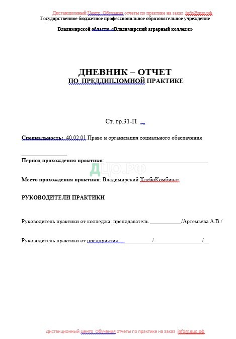 Титульный лист отчета по практике по праву и организации социального обеспечения