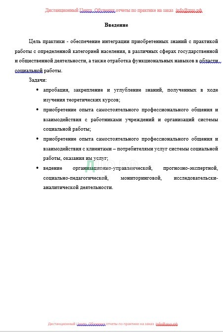 Цель практики — обеспечение интеграции приобретенных знаний с практикой работы с определенной категорией населения, в различных сферах государственной и общественной деятельности, а также отработка функциональных навыков в области социальной работы.