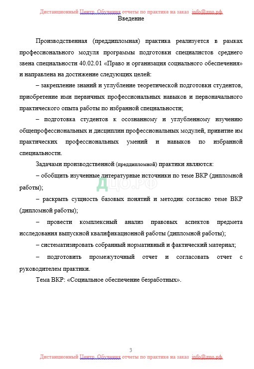 Введение отчета по практике по праву и организации социального обеспечения