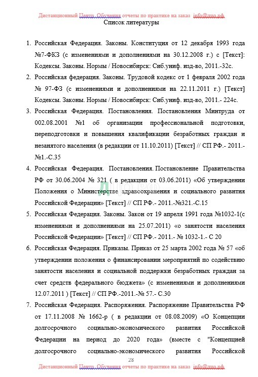 Список литературы отчета по практике по праву и организации социального обеспечения