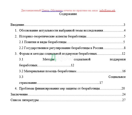 Содержание отчета по практике по праву и организации социального обеспечения