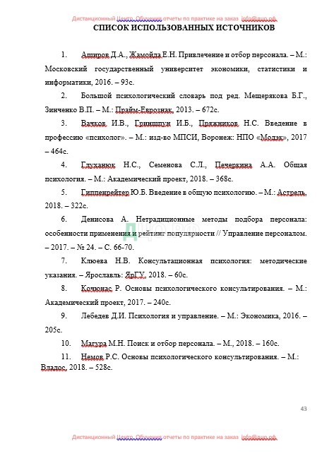 Список литературы отчета по практике по психоанализу и консультативной психологии