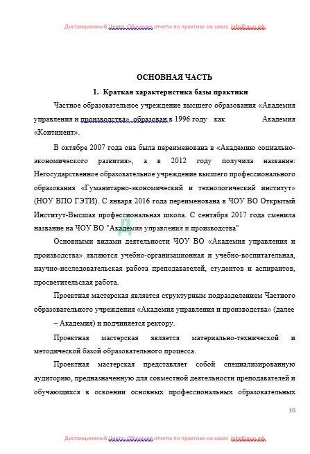Учебная практика была пройдена на базе ЧОУ ВО «Академия управления и производства» в Проектной мастерской на должности штатного психолога.