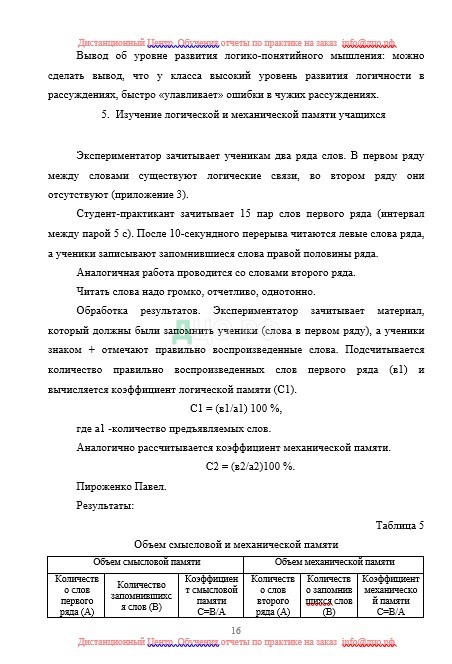 Глава 5 отчета по практике по психолого-педагогическому образованию