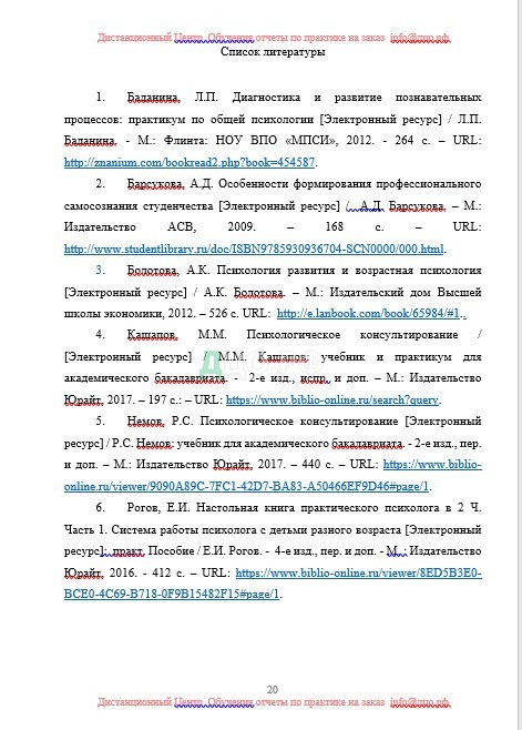 Список литературы отчета по практике по психолого-педагогическому образованию