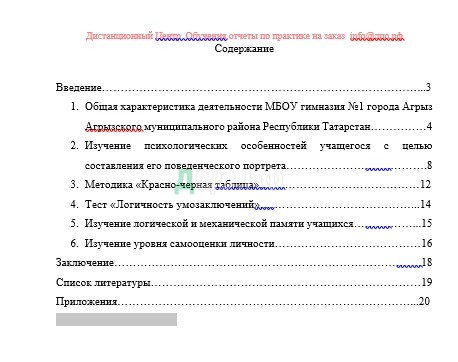 Содержание отчета по практике по психолого-педагогическому образованию