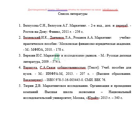 Список литературы отчета по практике по рекламе и связи с общественностью