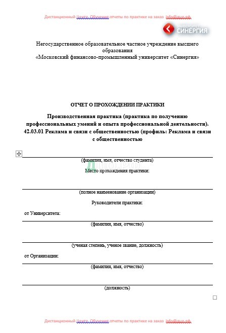 Титульный лист отчета по практике по рекламе и связи с общественностью