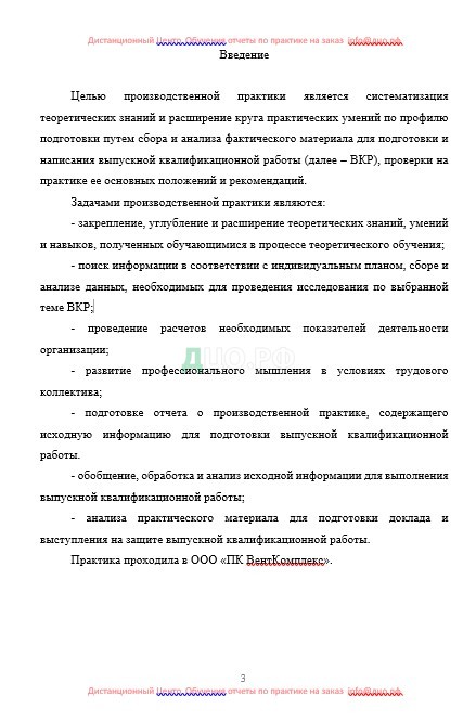 — подготовке отчета о производственной практике, содержащего исходную информацию для подготовки выпускной квалификационной работы.
