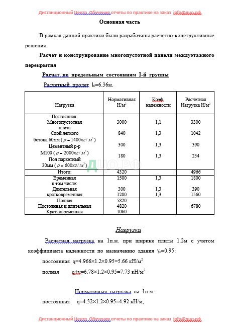 Основная часть отчета по практике по строительству