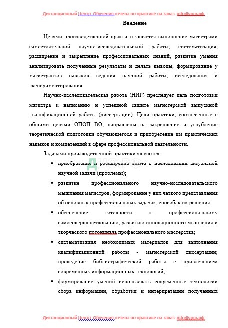 Научно-исследовательская работа (НИР) преследует цель подготовки магистра к написанию и успешной защите магистерской выпускной квалификационной работы (диссертации). Цели практики, соотнесенные с общими целями ОПОП ВО, направлены на закрепление и углубление теоретической подготовки обучающегося и приобретение им практических навыков и компетенций в сфере профессиональной деятельности.